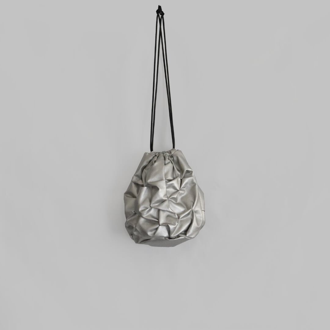 SHiWA series より、シルバーのPUレザー(合成皮革)を使用した巾着です。
