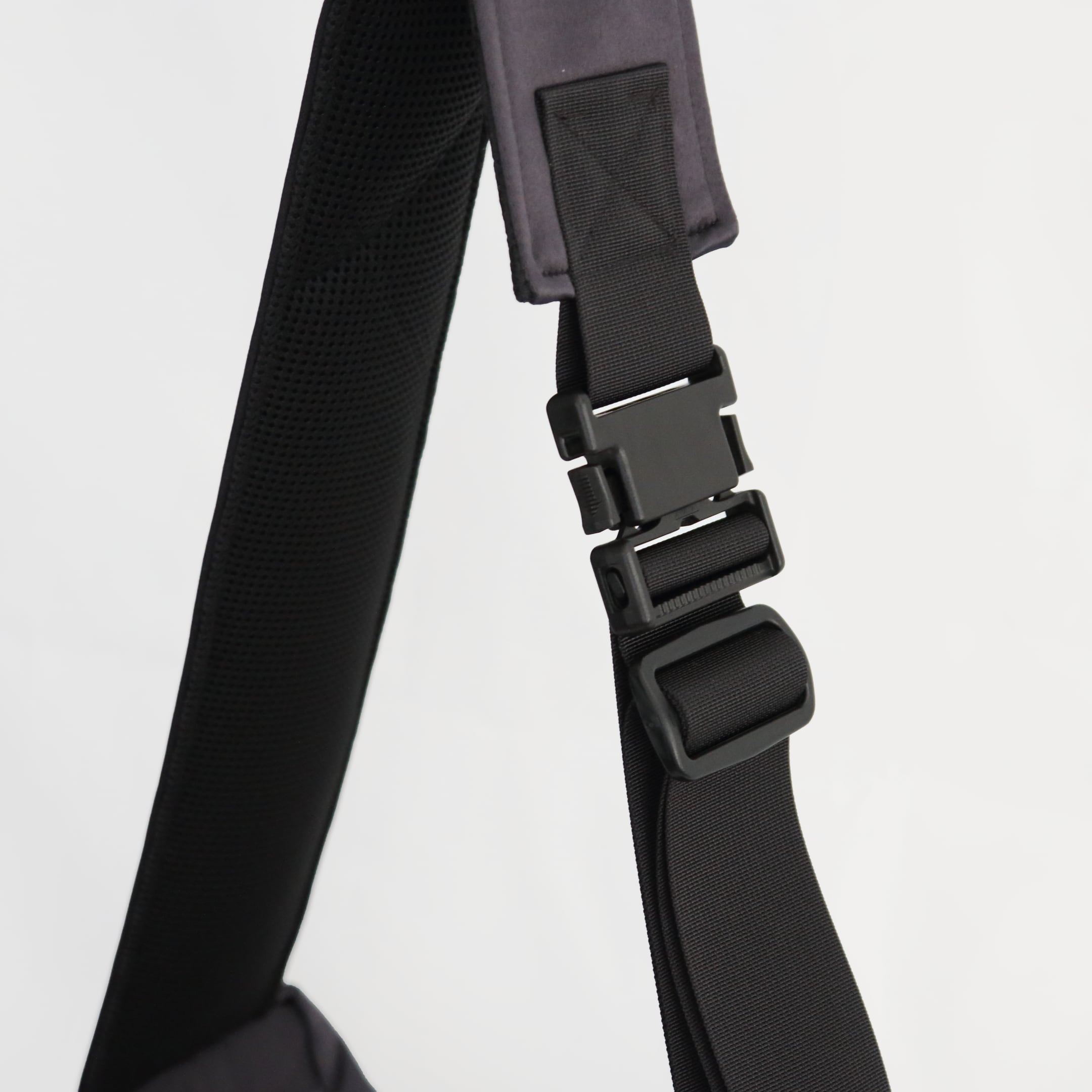 太いタスキのような肩掛けが特徴で、バックルでお好きな長さに調整することも可能です。
